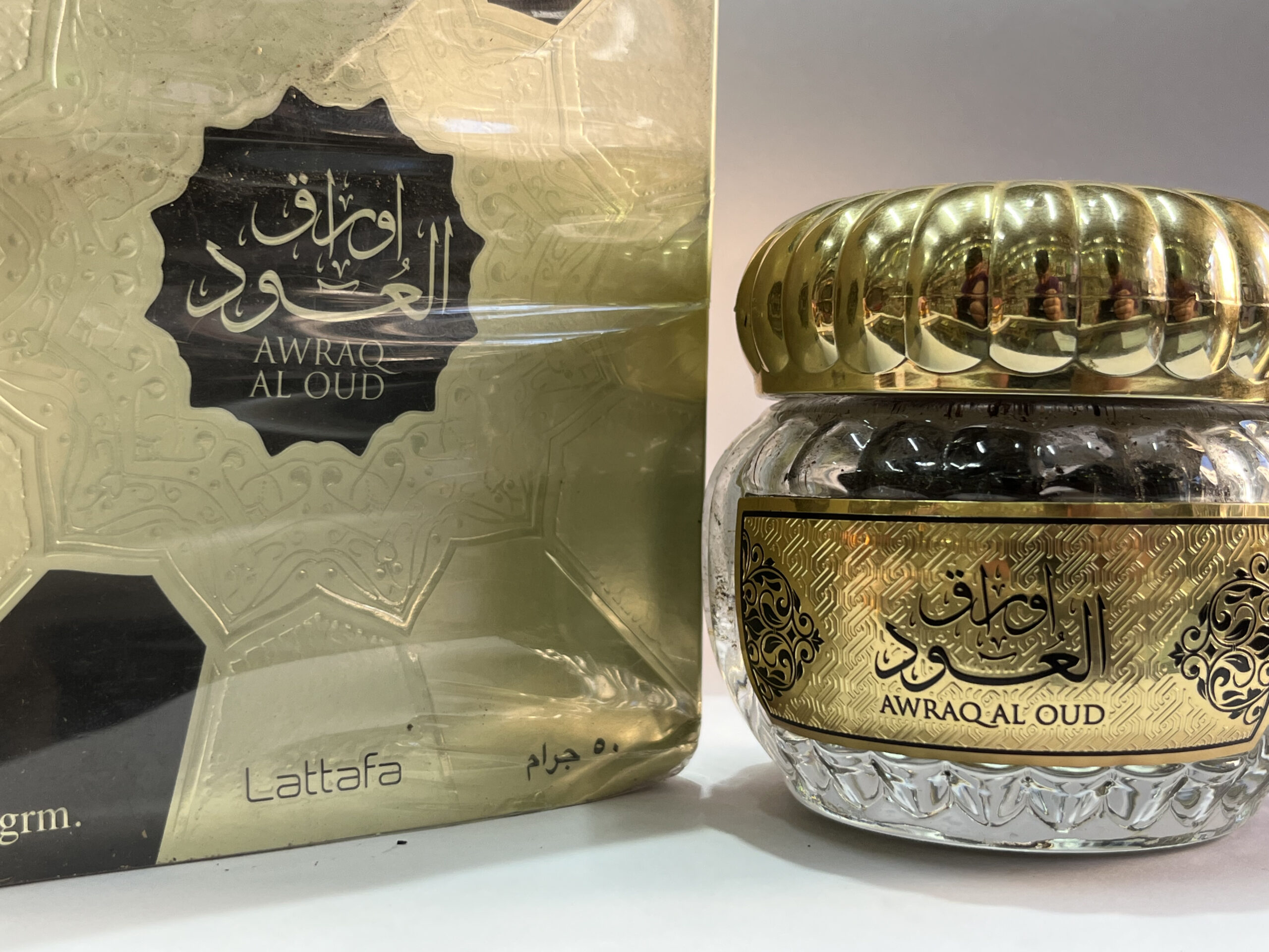 Awraq Al Oud (Les Feuilles d’Oud) incarne l’élégance intemporelle. Il est composé de morceaux de bois d’agar d’une qualité exceptionnelle, choisis pour leur rareté et leur parfum naturellement puissant. Ces « feuilles » sont subtilement parfumées (« Moattar ») afin d’en exalter la noblesse sans masquer l’odeur naturelle et authentique du Oud.