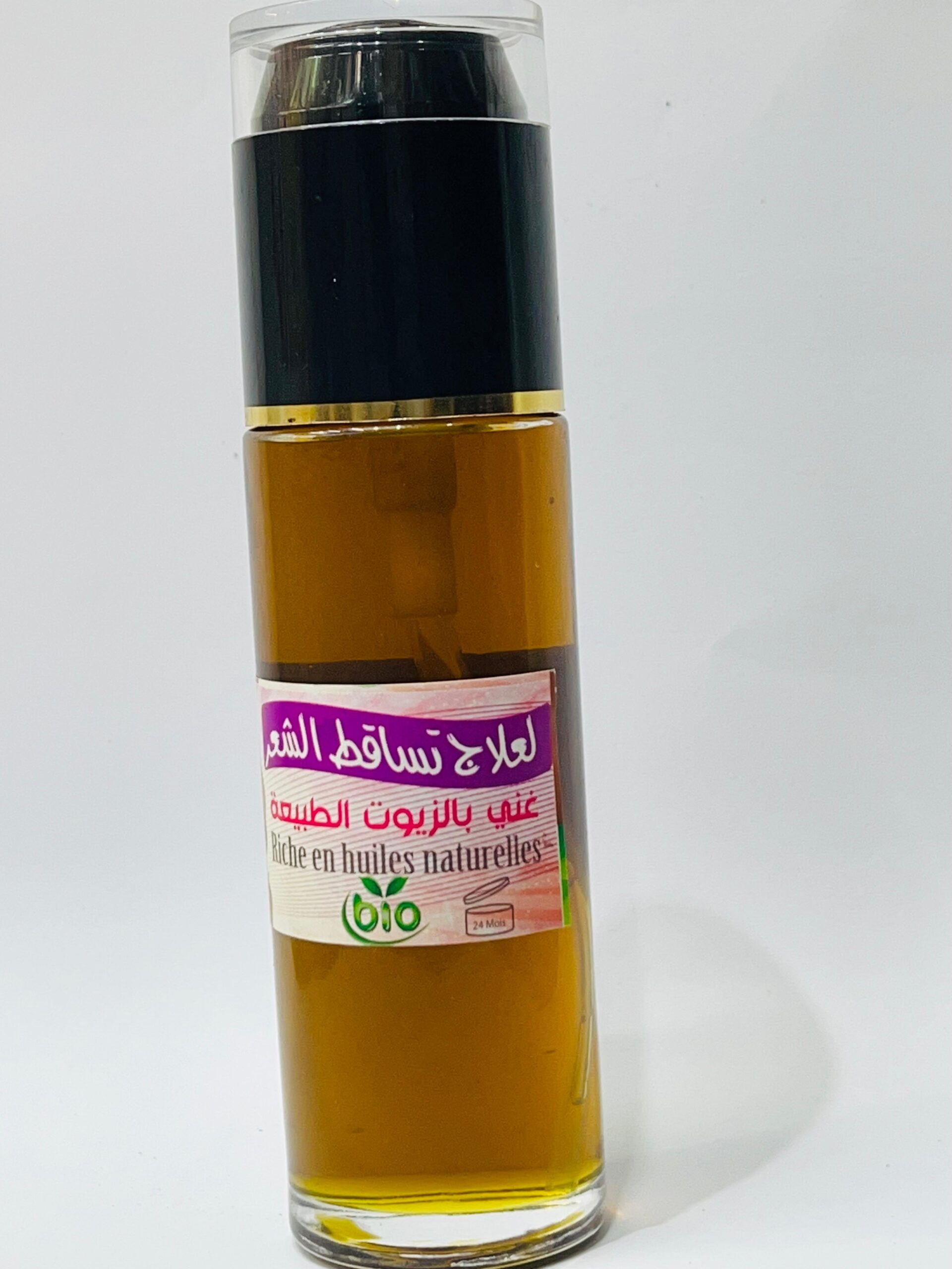 Notre huile capillaire anti-chute artisanale est un traitement naturel intensif, préparé avec soin à partir de 20 herbes et huiles végétales pures reconnues pour leurs bienfaits sur la croissance capillaire.